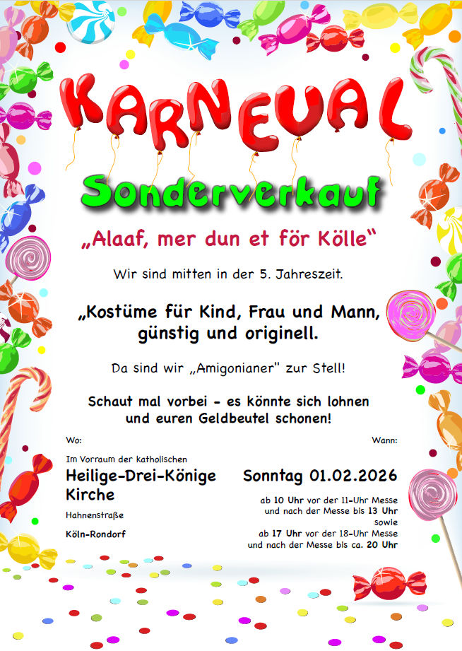 Karneval-Sonderverkauf am 1. Februar in Heilige Drei Könige